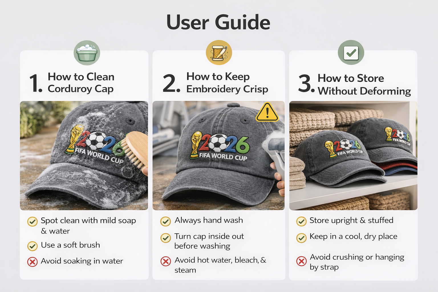 Durability is the second key advantage. Cotton denim is a robust, tightly woven fabric known for its longevity. Unlike synthetic materials that may pill or fade quickly, a well-made cotton denim cap maintains its structure and color through repeated wear and washing. This durability is essential for a FIFA World Cup 2026 Hat with Embroidered gray Adjustable Cotton Denim Baseball Cap Everyday piece that is meant to be worn frequently. It also ensures that bulk sports hats ordered for teams or promotions withstand rigorous use.