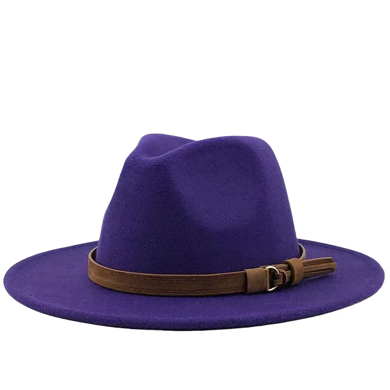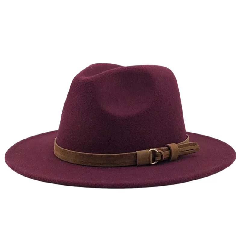 Custom Winter Wool Fedora Hat for Men and Women Vintage Style Wide Brim Leather Straw with Ribbon Buckle for Party
