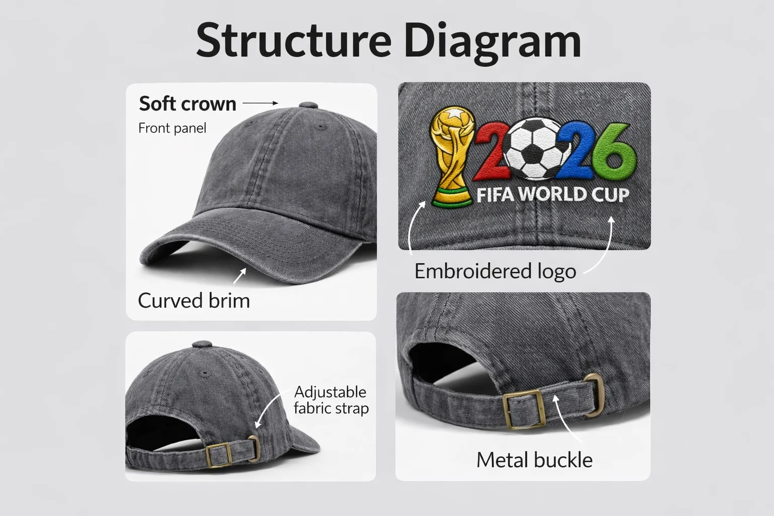• 2026 Football League Vintage Sporty Embroidered 6-Panel Adjustable Baseball Cap Unisex