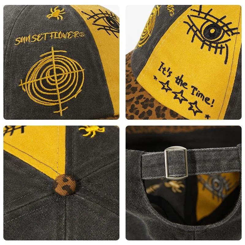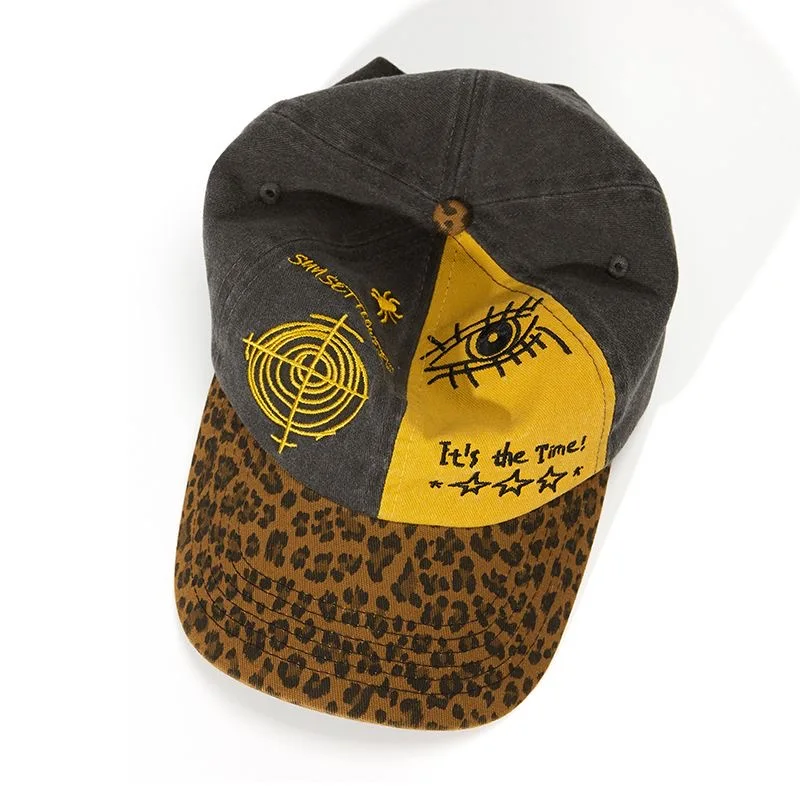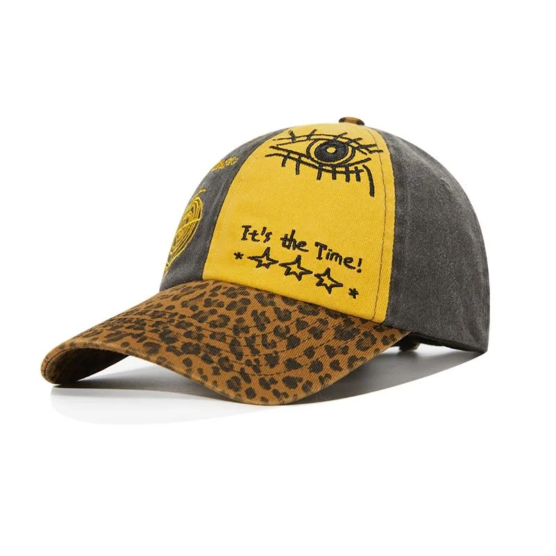 Vintage Leopard Print Baseball Cap Unisex Color Block Eye Embroidery Dad Hat Adjustable Hip Hop Cap for Men Women Outdoor