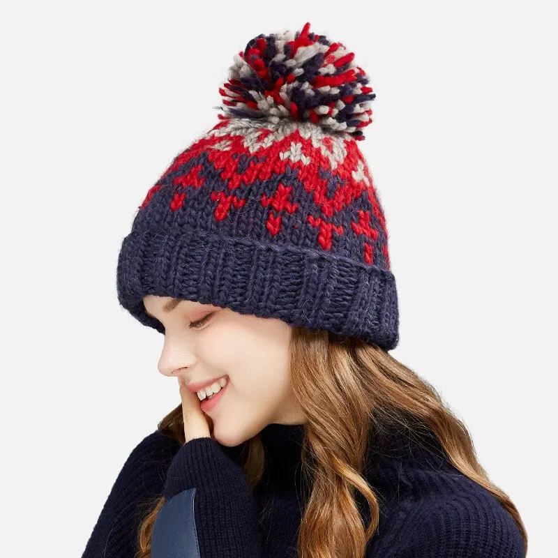 1.The "Manufacturer Acrylic Warm Knitted Hat With Wool Ball Designer Jacquard Custom Winter Beanie Hat For Women" is an ideal accessory for the colder months. Crafted from high-quality yarn and filled with a luxurious blend of wool, it provides supreme warmth and comfort, making it perfect for outdoor activities such as traveling and hiking. Its 3D embroidery insignia and jacquard pattern give it a visually appealing, classic appearance, while the addition of a winter wool ball at the top adds a unique touch, making it a favorite among fashion-conscious women.