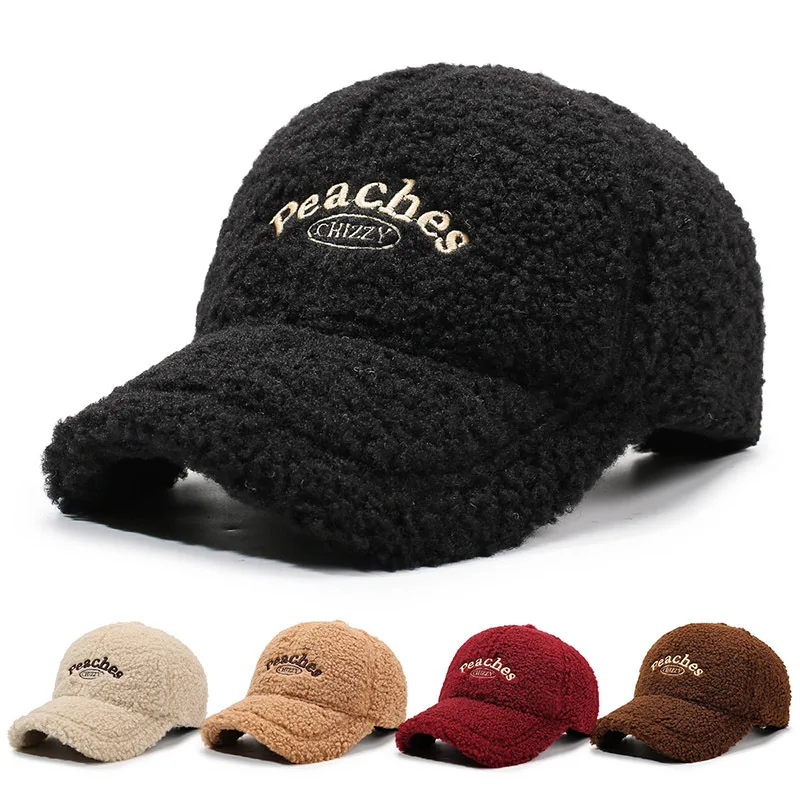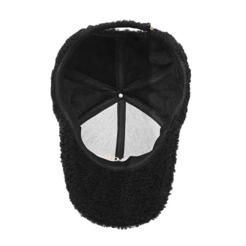 • Women's Sherpa Fleece 6-Panel Adjustable Baseball Cap Embroidered Letter Design Winter Outdoor Fashion Hat for Casual Travel Use