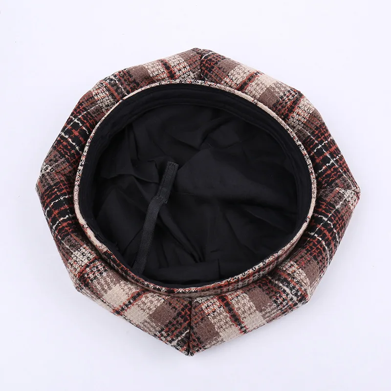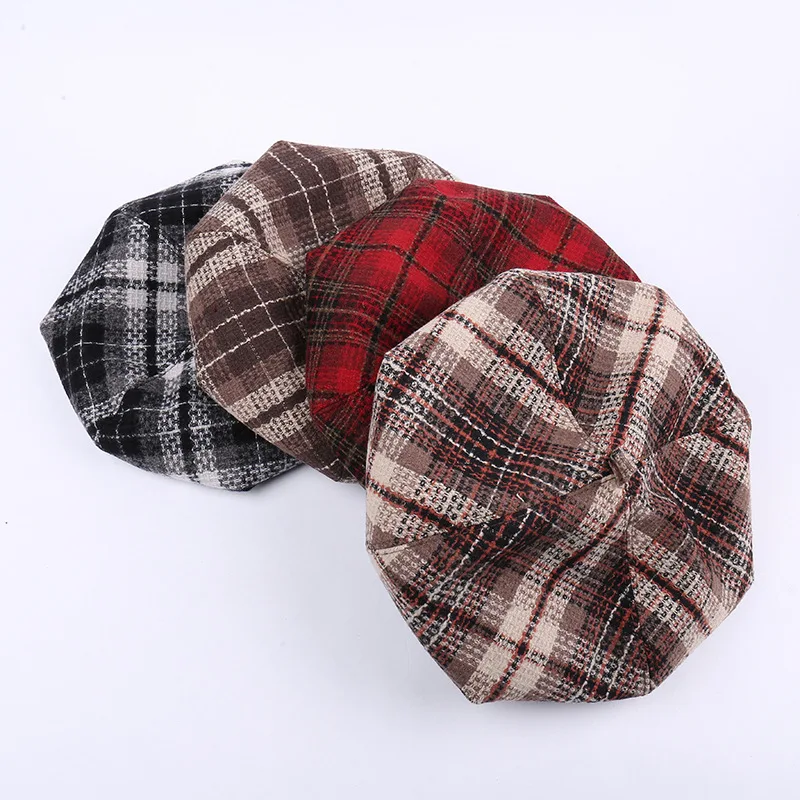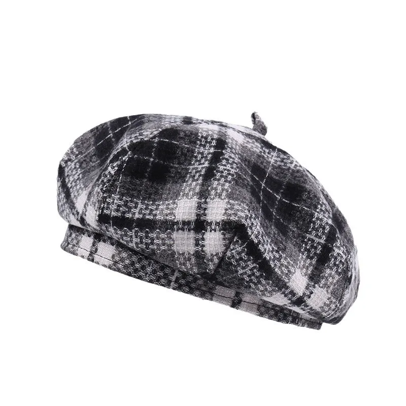 • New British Vintage Checkered Beret for Women - Suitable for Autumn/Winter - Wool Blend - Warm - Artist's Hat