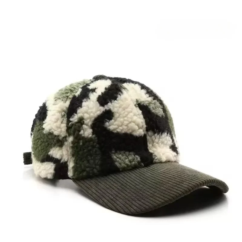 2025 New Fashion High Quality Camouflage 6-Panel Fleece-Lined Corduroy Hand Embroidery Common Warm Winter Baseball Cap