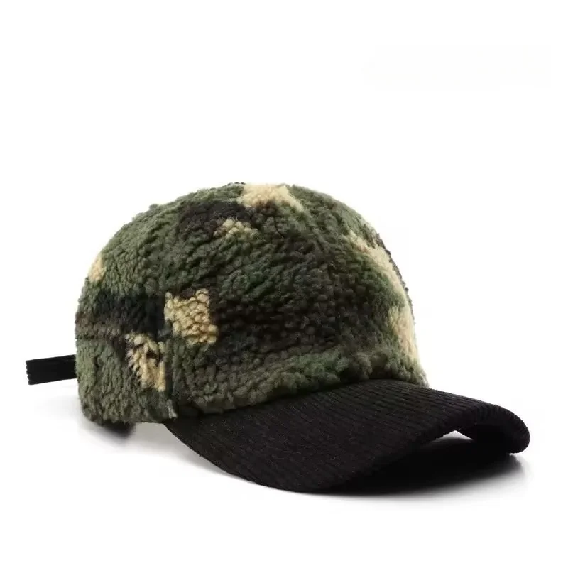 • 2025 New Fashion High Quality Camouflage 6-Panel Fleece-Lined Corduroy Hand Embroidery Common Warm Winter Baseball Cap