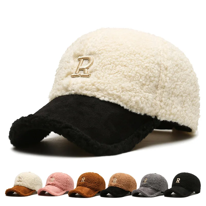 • New Autumn-winter Warm 6-panel Baseball Caps Suitable Both Men Women Adjustable Thick Caps Embroidered Letters Teddy Fleece
