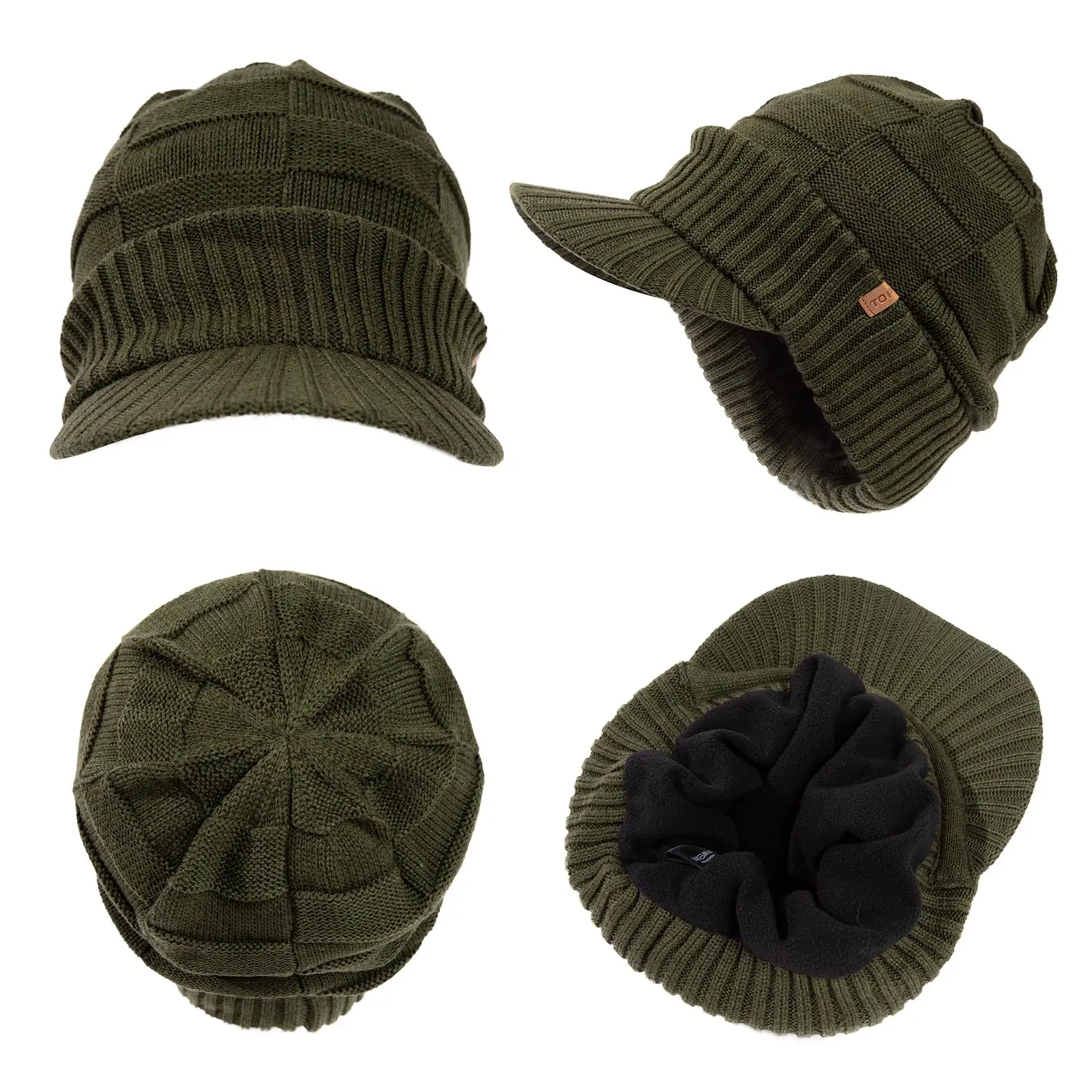 • New Model Custom Acrylic Beanie with Brim Visor Cap Warm Winter & Autumn Hat for Men Women