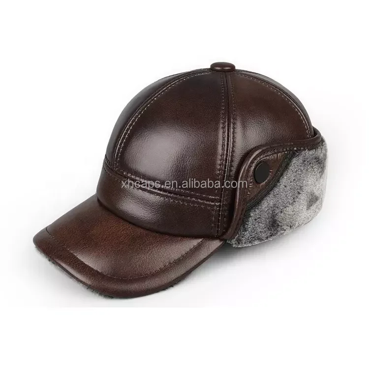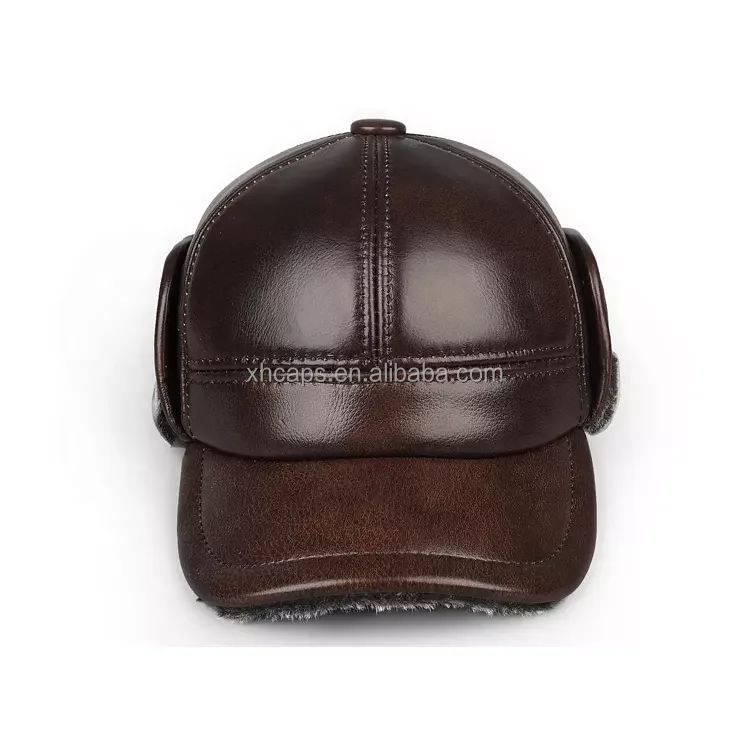 Wholesale High Quality PU Leather Winter Warm Baseball Caps with Faux Fur