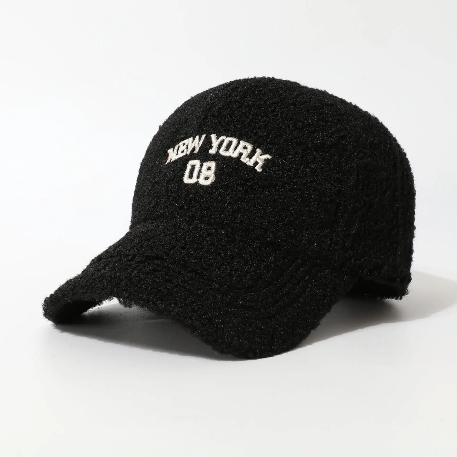 • Winter and Autumn Lambskin Baseball Cap - Warm Protective Wind-resistant Letter-stitched Fashionable Plush Baseball Cap
