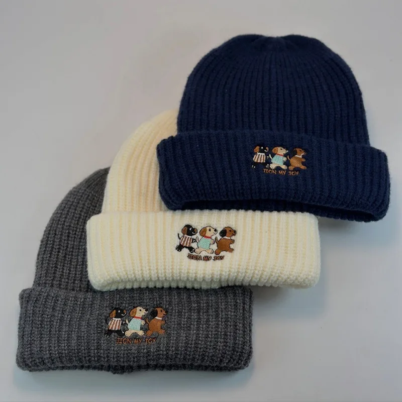 • Customized Cartoon Cute Puppy Letter Embroidery Knitted Hat Cold-proof