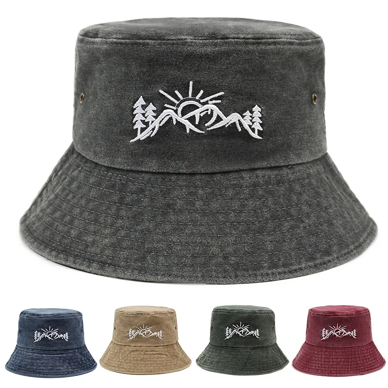 New Embroidered Fishing Hat Washed and Distressed Outdoor Fishing Sun Hat Street Bucket Hat