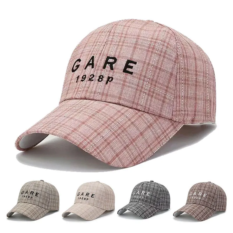 Baseball Cap 2026 New Style Fashionable Checkered Letter Embroidery Summer Sun protection Hat for Women Sunshade Hat