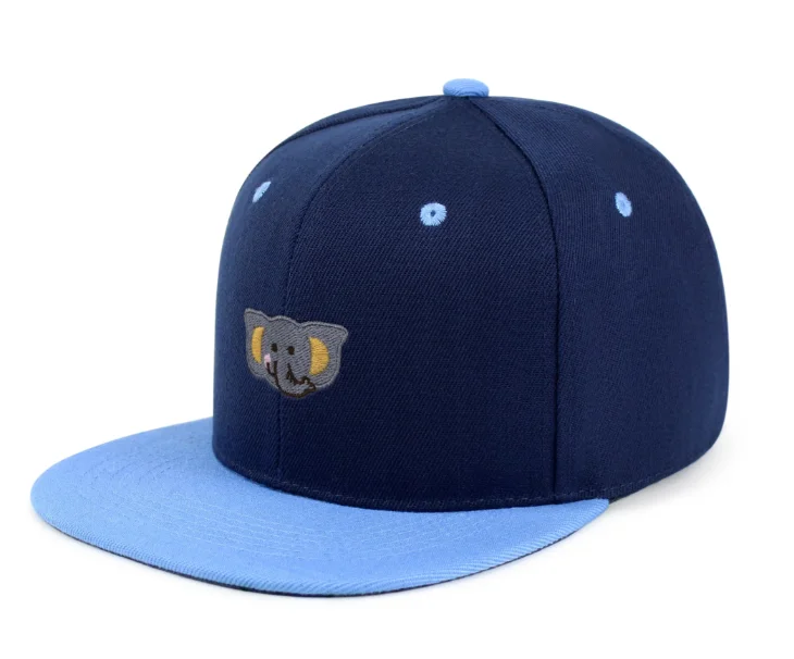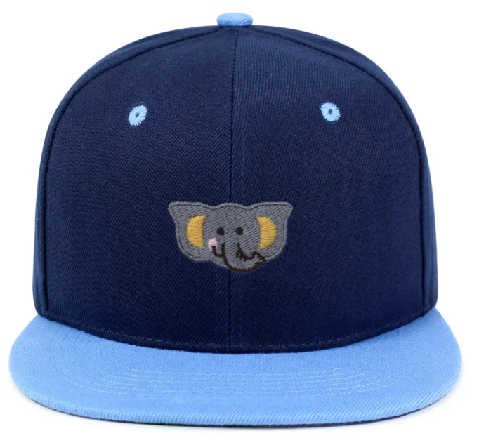 • Customize Embroidered Flat Brim Snapback Hat for Unisex Navy Blue with Light Blue Adjustable Cap for Casual Streetwear Polyester